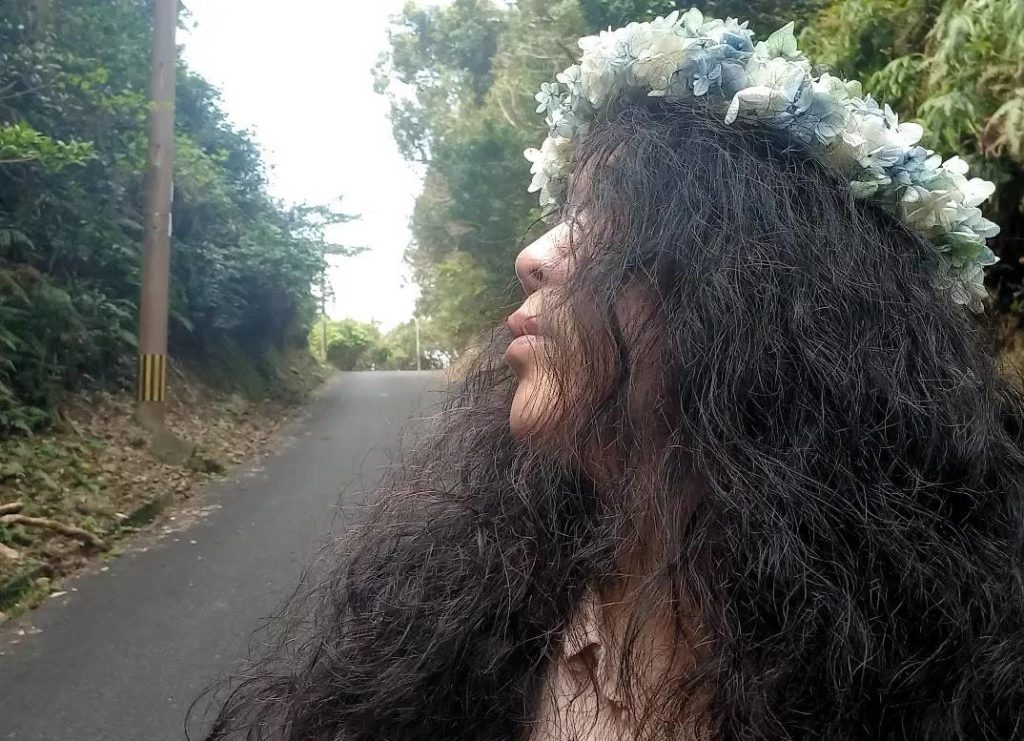 旅の中でどこに行くにもこの環を持ち歩いて連れて行っていた。その際、何となく頭に付ける花冠としてならいいのかな・・・と思い、頭に装着してみた。